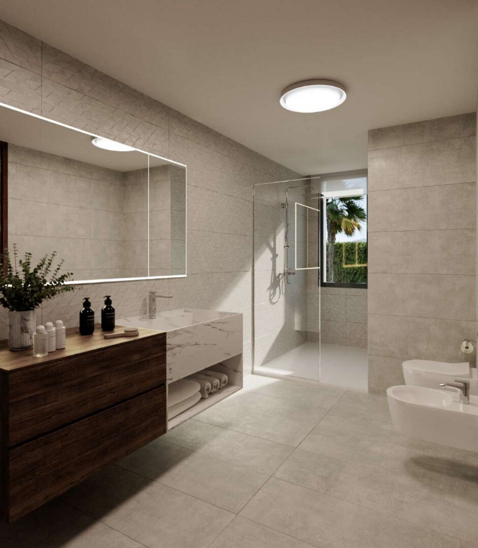 Visuose namuose naudojamos aukštos kokybės medžiagos ir išskirtinio dizaino dangos. Jausmas viduje yra labai erdvus dėl aukštų lubų ir didelių langų, nukreip...tų į jūrą. Laisvas grindų aukštis 2,80 m, hole ir svetainėje yra dvigubo aukščio erdvės.