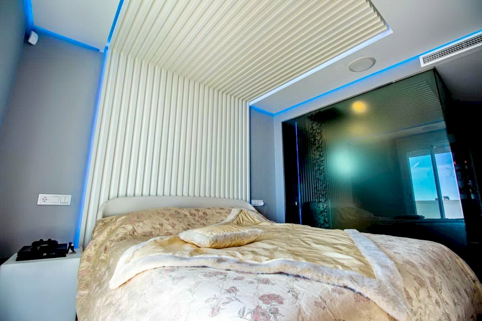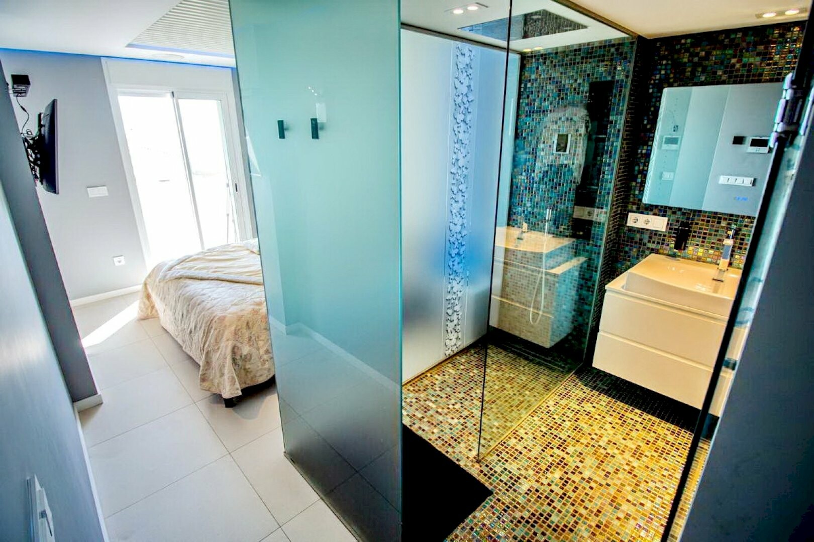 „Spectacular Design Villa“ yra vos 5 minutės nuo Cala de Finestrat paplūdimio. Ją sudaro: Pirmame aukšte yra svetainė, atvira virtuvė, vienas miegamasis, sporto salė ir vonios kambarys. Pirmas aukštas Vienas miegamasis su persirengimo kambariu (en-suite), du dviviečiai miegamieji ir 2 vonios kambariai. Jame taip pat yra baseinas, vaismedžiai, dvi d...idelės lauko sandėliavimo patalpos, namų automatika, vamzdynų muzika, daugiabučių sistema visuose kambariuose ir priežiūros sistema. Korpusas yra 463 m2 ploto sklype