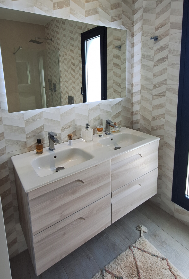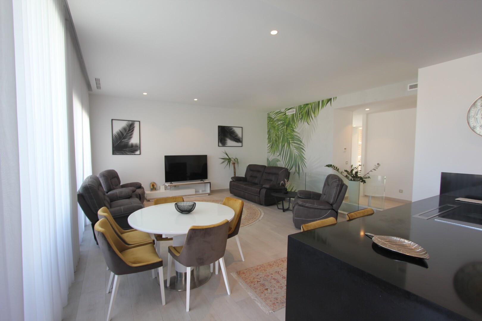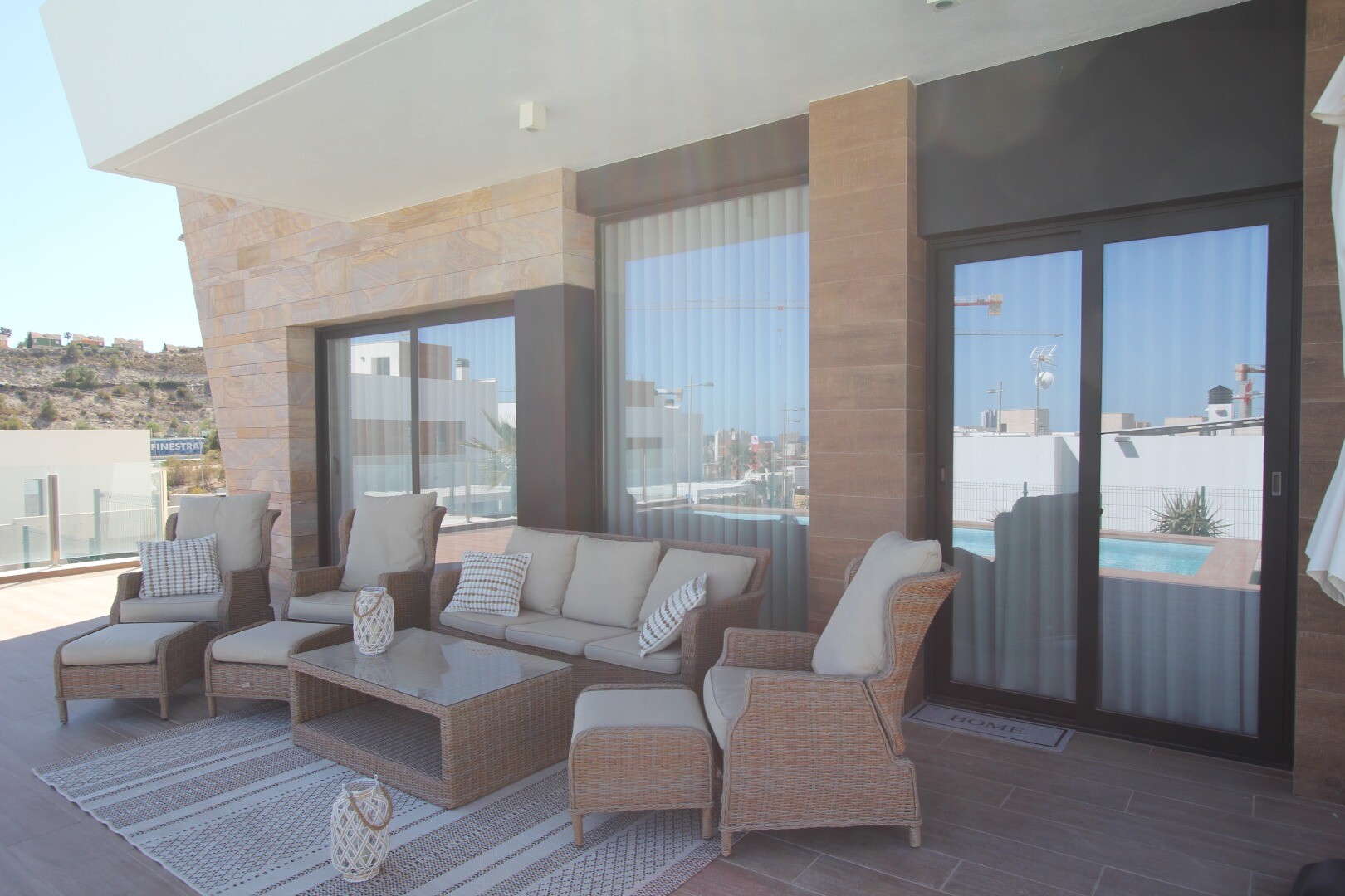 Viloje yra 3 miegamieji, 2 vonios kambariai ir erdvi svetainė su atvira virtuve. Erdvi terasa su 32 m2 ploto baseinu orientuota į pietryčius, iš kurios atsiveria Benidormo vaizdai. Taip pat yra soliariumas, iš kurio atsiveria platus vaizdas į Benidormą ir kalnus.