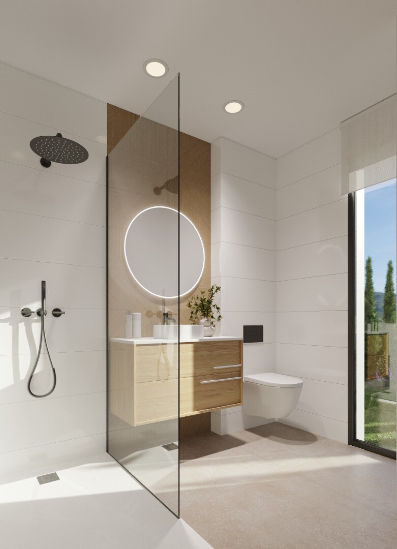 Išskirtinė naujos statybos vila Finestrate, 451 m² sklype su privačiu baseinu ir sodu. Namo plotas – 127 m², 32 m² terasų, 53 m² soliariumas ir rūsys su 33 m² anglišku kiemeliu, kuris suteikia natūralios šviesos apatiniam aukštui.