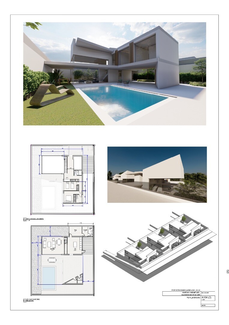 Nedidelis 3 identiškų išskirtinių vilų projektas Fortūnoje – Las Kalendas, 365 m² sklype. Vilose bus 3 miegamieji, 4 vonios kambariai, 2 sandėliavimo patalpos, pilnai įrengta virtuvė ir vonios kambariai, elektrinės žaliuzės, karšto/šalto oro kondicionieriai per ortakius ir 6x3 m baseinas.