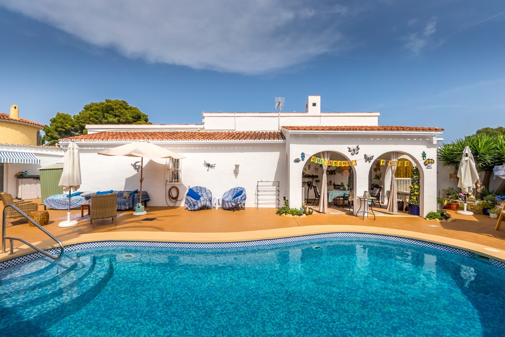 Lauko zona yra ypač svetinga ir funkcionali, joje yra privatus baseinas, kepsninė, graži veranda ir gerai prižiūrimas, mažai priežiūros reikalaujantis sodas.