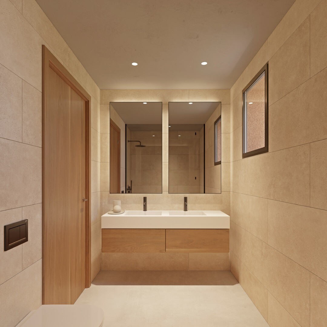 Šioje viloje įrengtas jaukus interjeras, kuriame pagrindinį vaidmenį atlieka mediena. Šis dizainas išsiskiria tuo, kad poilsio zonos aiškiai atskirtos nuo aktyvesnių namo zonų. Viršutiniame aukšte yra 3 miegamieji, o pirmame aukšte - virtuvė ir svetainė-valgomasis, kuriuos papildo lauko erdvės. Šios zonos, pavyzdžiui, veranda su lauko valgomuoju, terasa, baseinas ir sodai su vietinėmis rūšimis, idealiai tinka mėgautis Viduržemio jūros klimatu praktiškai ištisus metus ir sujungia namą su gamta.