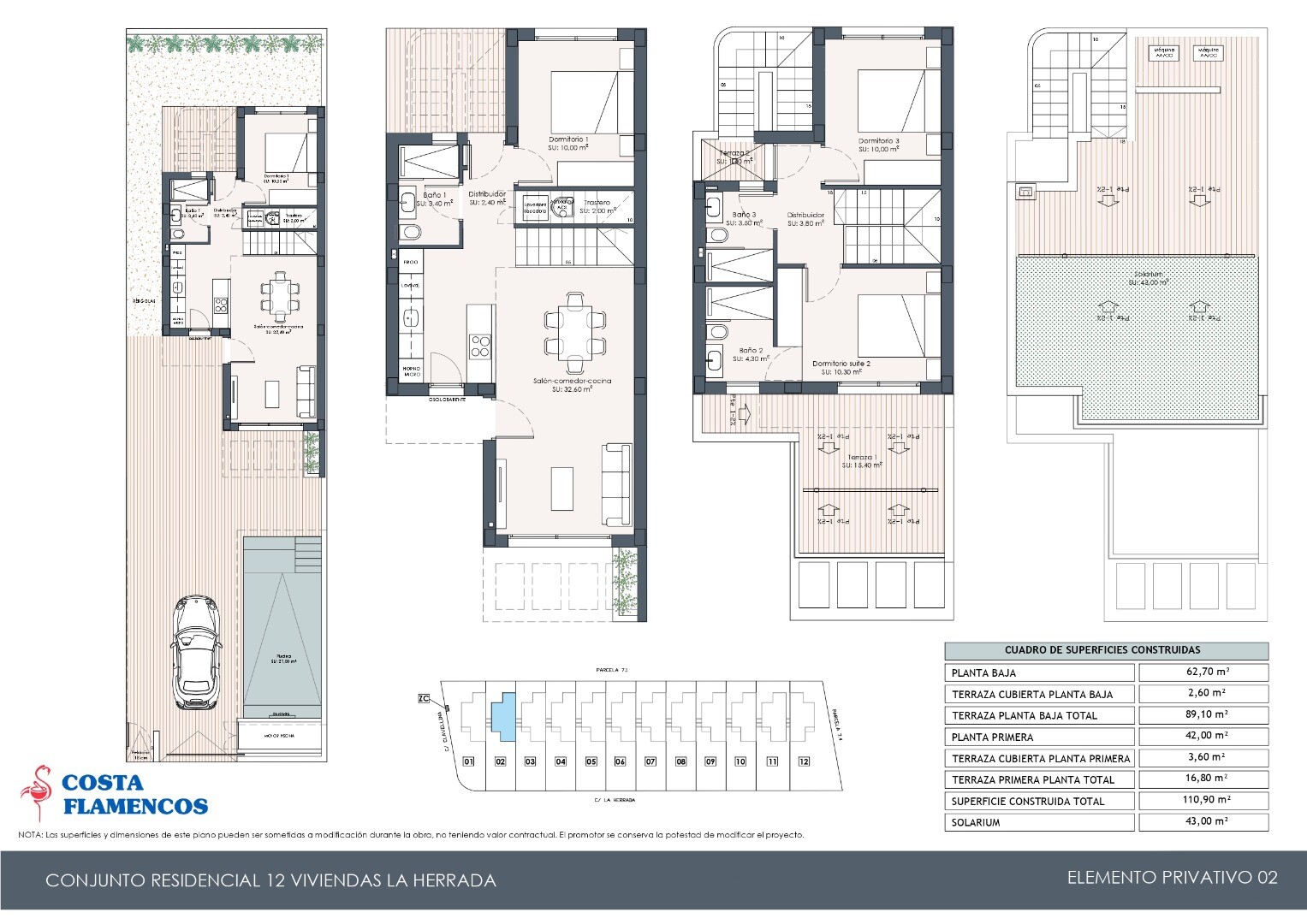 7x3m baseine yra krioklys su sūkurine vonia ir lauko dušu. Vilose yra stogo soliariumas su vaizdu į Torrevieja druskingus ežerus, pilnai įrengti vonios kambariai su šildomomis grindimis ir vidaus apšvietimu.