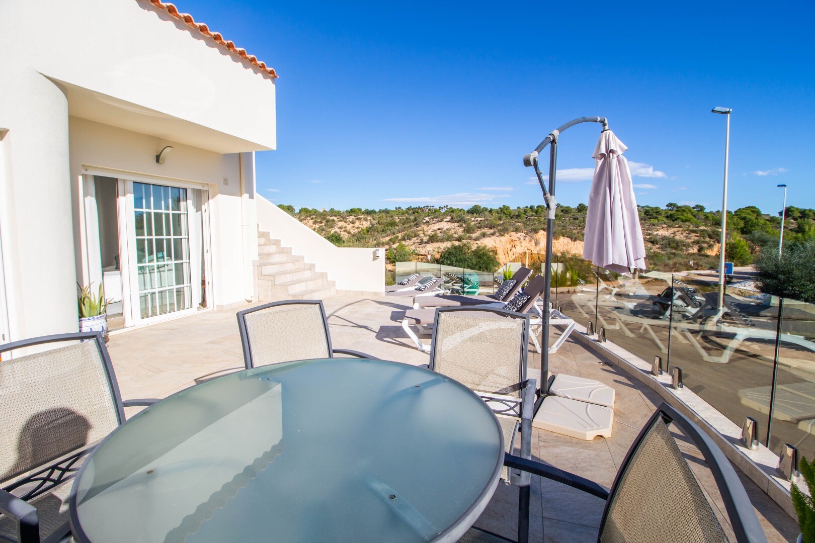 Namas yra viename geriausių išskirtinio Las Ramblas golfo aikštyno rajonų, kelios minutės pėsčiomis nuo LA FUENTE prekybos centro (su barais, restoranais, vaistine, autobusų stotele...) ir Villamartín bei Campoamor golfo aikštynais. Tik 5 km nuo rojaus paplūdimių ir Dehesa de Campoamor urbanizacijos (su visomis jos paslaugomis: prieplauka, prekybos centrai, vaistinė, sveikatingumo centras, restoranai, teniso ir padelio klubas ……..). Su įspūdinga žalia zona, kuri eina nuo Las Ramblas golfo aikštyno iki paplūdimio.