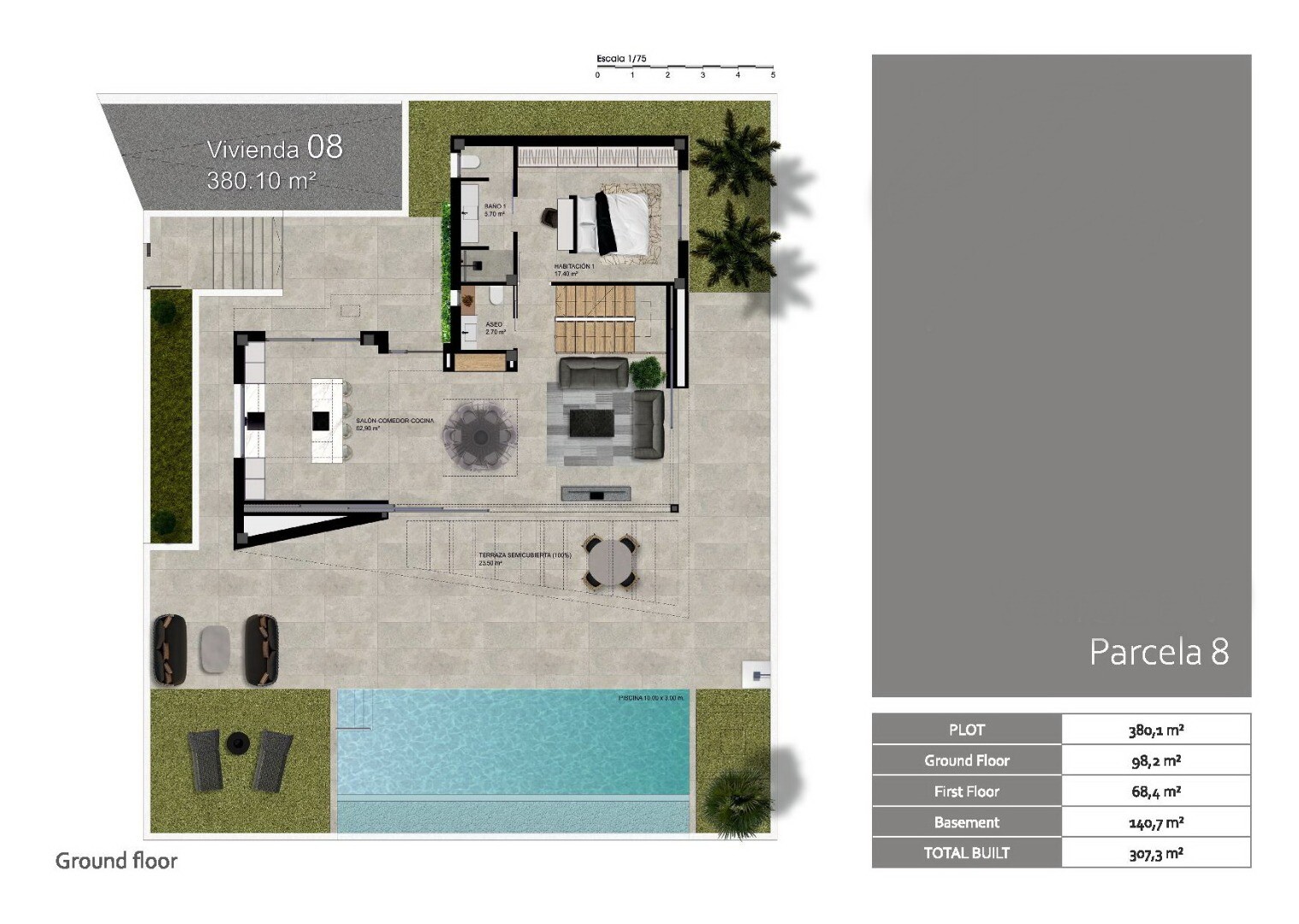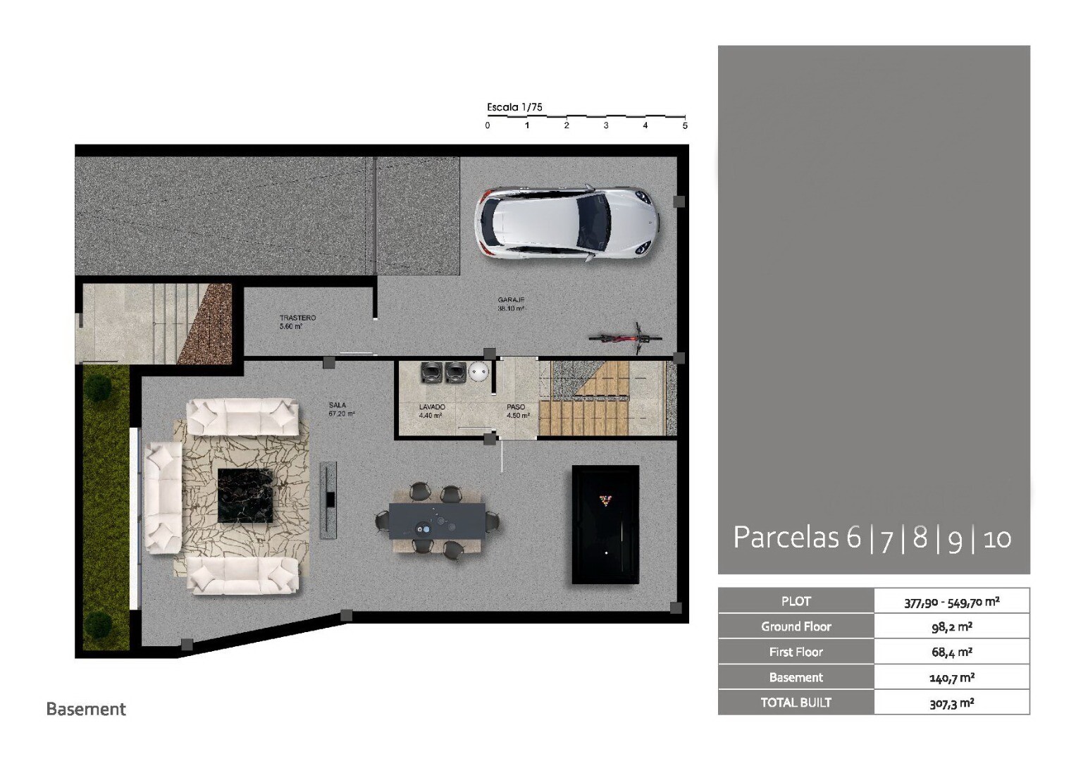 10 modernių šviesių vilų su privačiu baseinu, automobilių stovėjimo aikštele, rūsiu ir pilnai įrengta virtuve.
