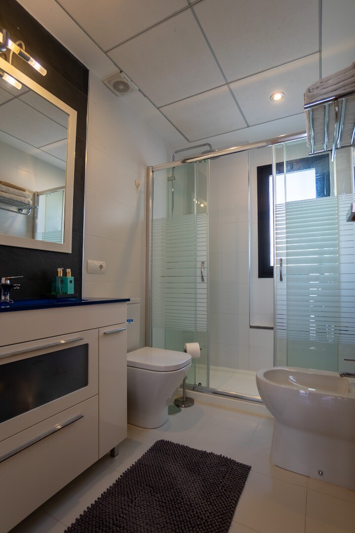 Parduodama žavinga vila Polop de la Marina mieste, Alikantėje, ramiame URBANIZAVIMO gyvenamajame rajone. Šis 2014 m. pastatytas naudotas turtas siūlo šviesią ir erdvią aplinką su aukštomis lubomis ir marmurinėmis grindimis visame name.