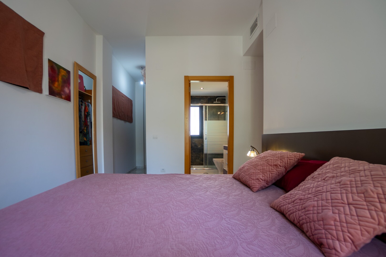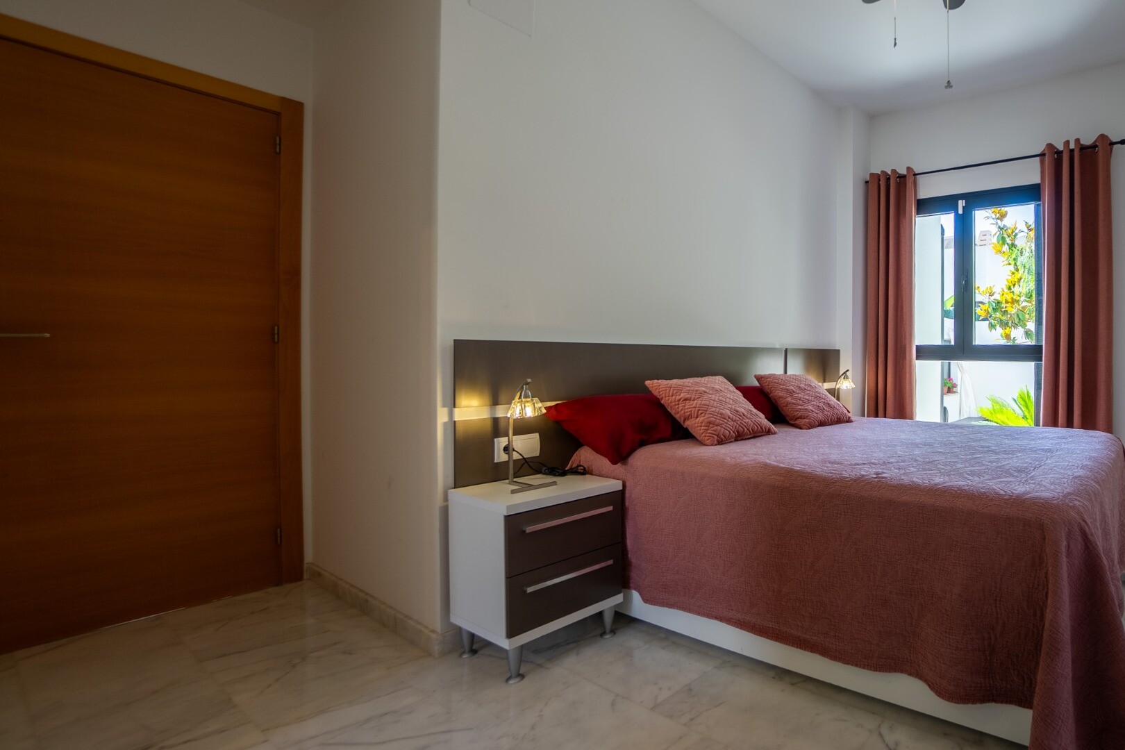 114 m² ploto name, pastatytame viename aukšte, yra 3 miegamieji ir 2 vonios kambariai. Pagrindiniame miegamajame ...yra atskiras vonios kambarys ir persirengimo kambarys, o kituose miegamuosiuose yra įmontuotos spintos ir bendras antras vonios kambarys. Neseniai atnaujintoje ir visiškai įrengtoje nepriklausomoje virtuvėje yra daug vietos saugykla ir pusryčių baras.