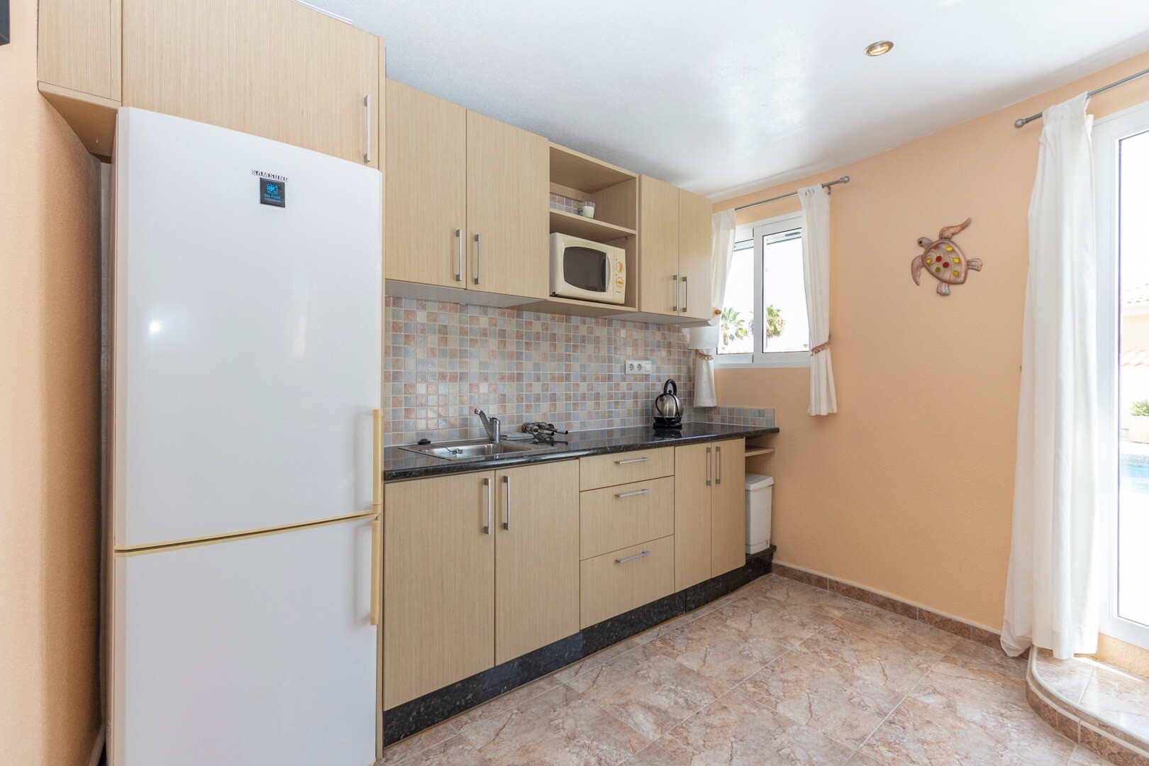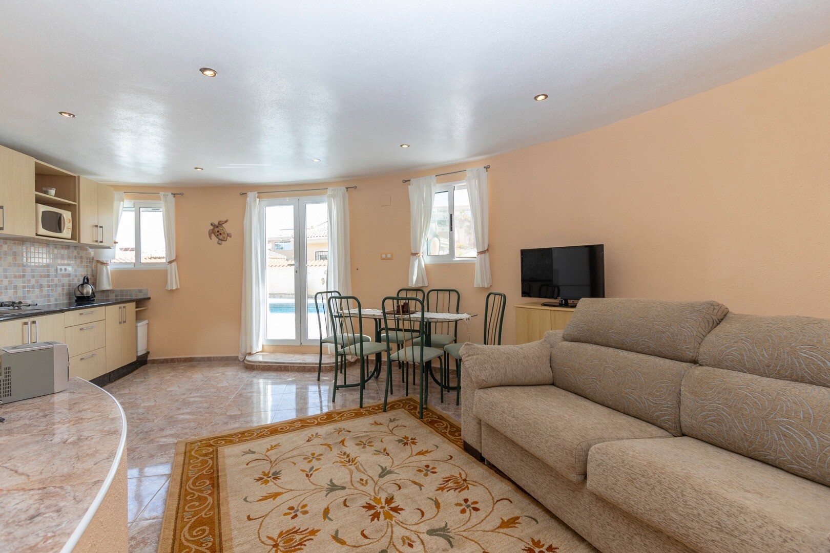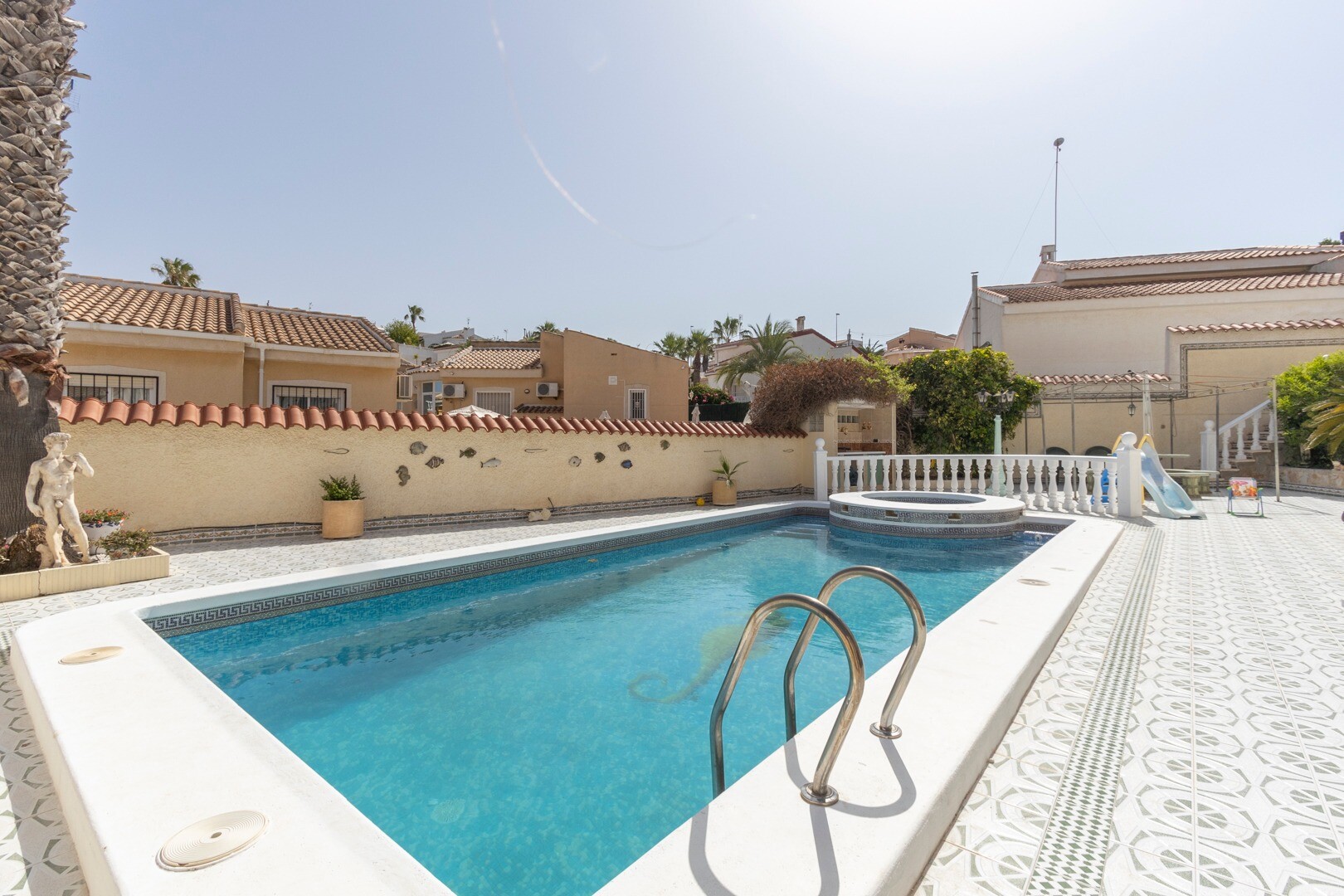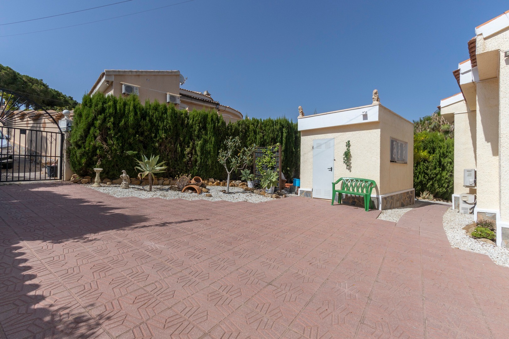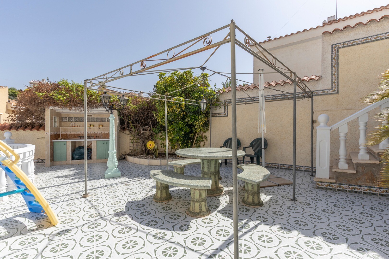 Beveik 600m² sklype yra gražus namas, orientuotas į pietus, su didele dalinai įstiklinta terasa. Pagrindinį namą sudaro svetainė-valgomasis su židiniu, pilnai įrengta virtuvė, 3 miegamieji su dvigulėmis lovomis, viename iš jų yra atskiras vonios kambarys ir kitas pilnas šeimos vonios kambarys. Pusrūsyje yra studija su atskiru įėjimu, atskira virtuv...e ir dideliu vonios kambariu. Name yra keli dideli sandėliukai, vasaros virtuvė, didelis saulėtas baseinas ir daug lauko erdvės, kuria galima mėgautis ištisus metus.