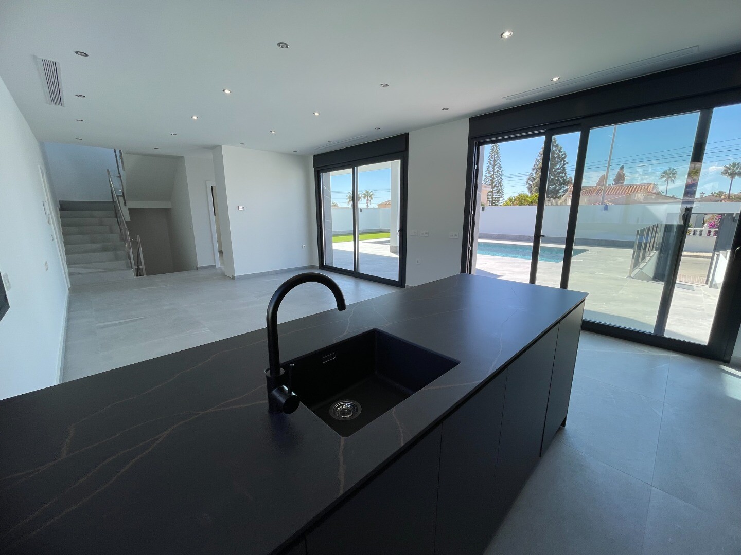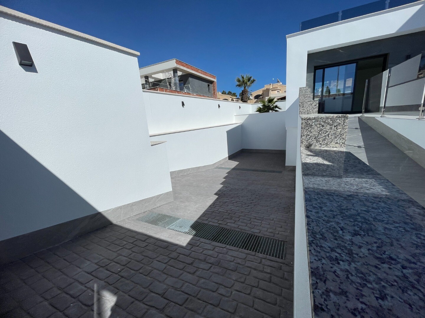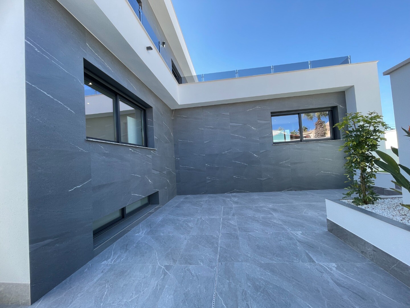 Moderni naujos statybos vila su 3 miegamaisiais ir 3 vonios kambariais Ciudad Quesada (Rojales) 500 m2 sklype ir 150 m2 gyvenamojo ploto su požeminiu garažu ir 2 rūsiais po 100 m2. Viloje yra šildomas baseinas 8x4m ir automatinė laistymo sistema sode. Be to, viloje įrengtas vidaus ir lauko apšvietimas, pilnai įrengta virtuvė su virtuvės buitine tec...hnika, atskira skalbykla ir grindinis šildymas bei oro kondicionavimas visame name per šilumos siurblį.