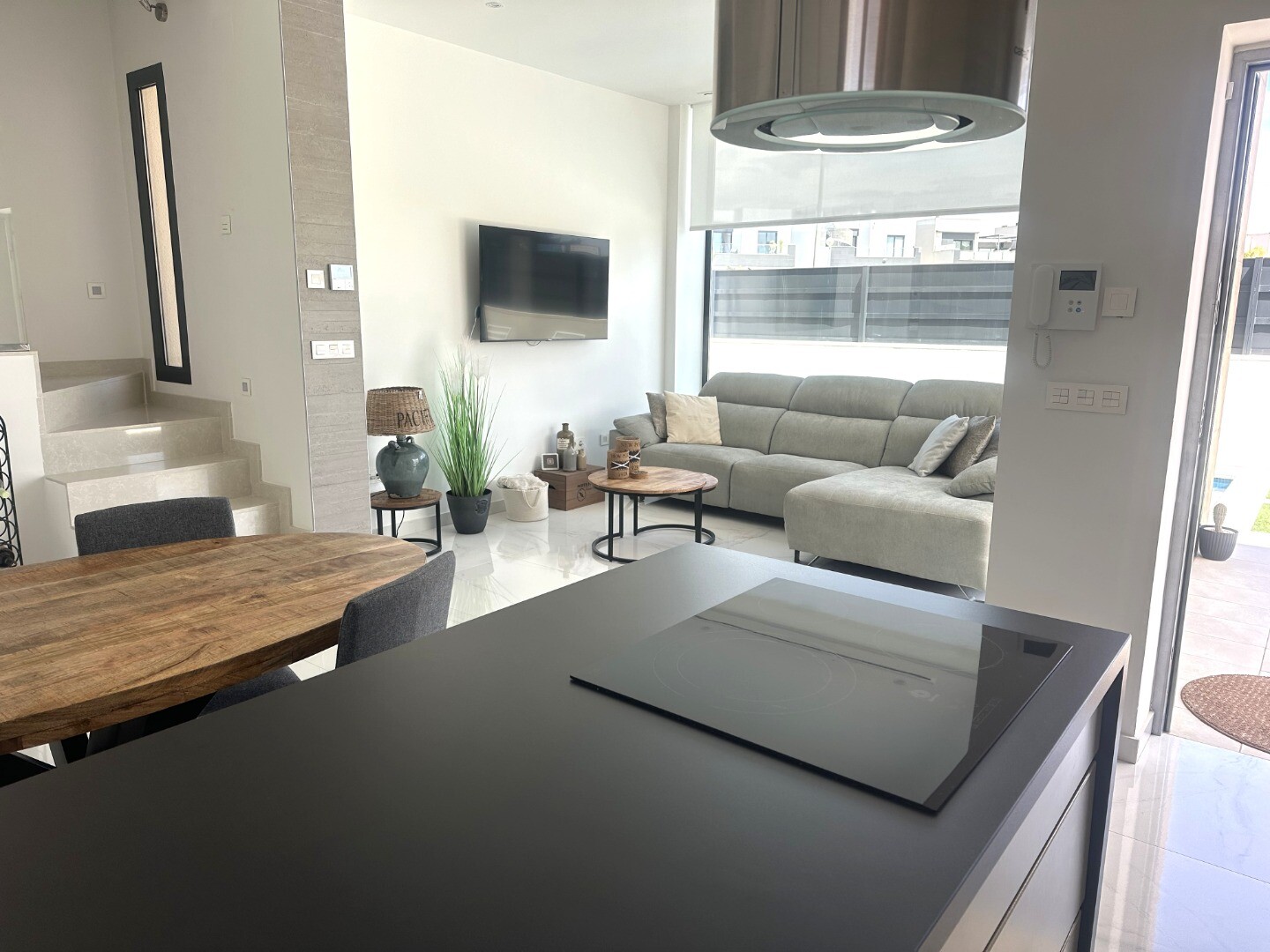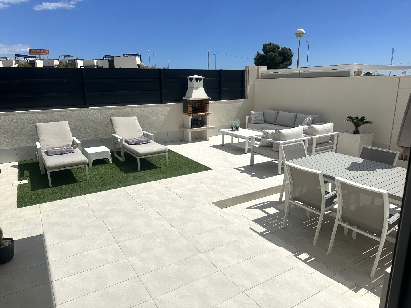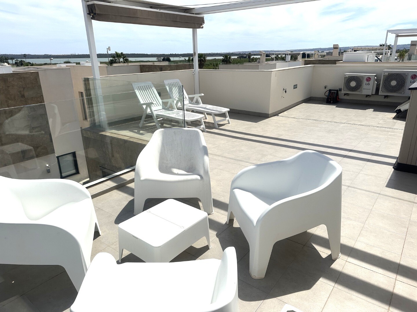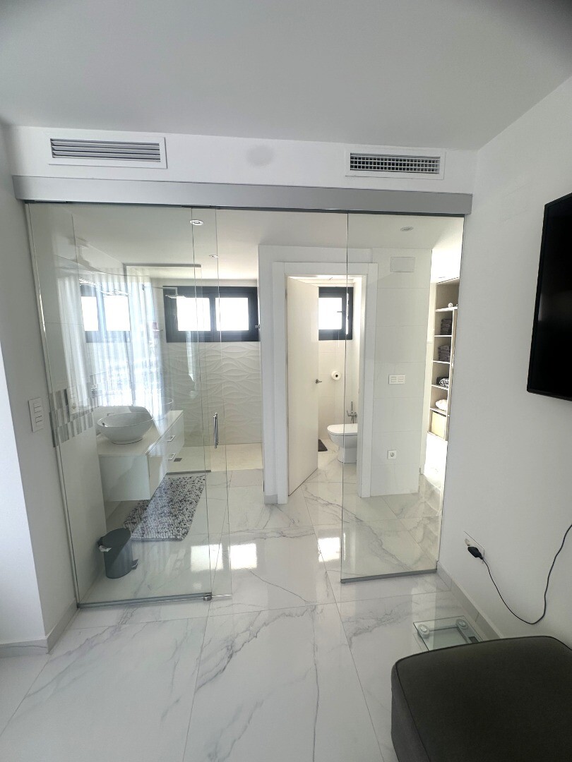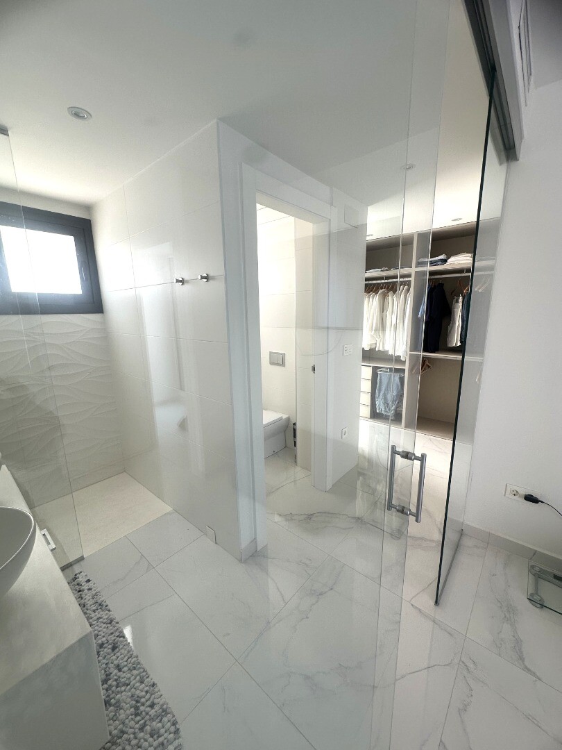 Šiuolaikinio perpardavimo stiliaus „Treze Villas“ 2016 m. su vaizdu į lagūną Ciudad Quesada mieste. Šį kompleksą Rojales sudaro 13 modernių namelių, iš kurių visi yra atskiri įėjimai bendru keliu. Privačiame 115m2 sklype yra privati vieta automobiliui sode. Pirmame aukšte yra šviesi erdvi svetainė su vaizdu į baseiną, atvira virtuvė, miegamasis s...u dvigule lova, vonios kambarys ir dengta terasa. Pirmame aukšte yra didelis miegamasis su vonios kambariu ir drabužine, iš šio miegamojo pateksite į 10m2 terasą. Be to, rasite dvivietį kambarį. Viršutiniame aukšte yra 44m2 soliariumas. Turtas visiškai atnaujintas su tokiais priedais kaip sūraus vandens baseinas, plytelėmis išklotas sodas, aukštos kokybės apšvietimas, buitinių prekių paketas, motorizuotas durų atidarytuvas, centrinis oro kondicionierius, namų automatika, taip pat aeroterminis vandens siurblys energijai iš aplinkinio oro išgauti karštam vandeniui ruošti, šildymui, oro kondicionavimui, grindų šildymui, pavėsinė ant stogo, namas neseniai buvo visiškai nudažytas iš išorės ir tvoros nebebuvo visiškai uždarytos. La Marquesa golfo klubas yra vos už 2 km. Prekybos centras Las Habaneras ir Guardamar paplūdimys yra vos už 10 minučių kelio automobiliu.