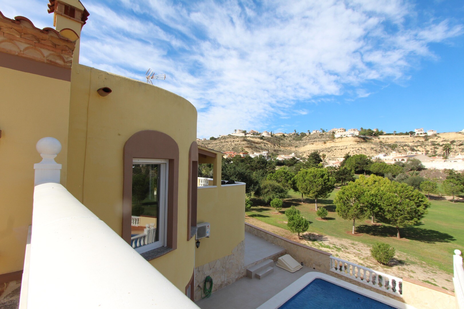 Žavingas viduržemio jūros stiliaus namas, visiškai modernizuotas, įsikūręs pirmojoje linijoje su nuostabiais vaizdais į La Marquesa golfo lauką. Namas neseniai buvo renovuotas ir atnaujintas, siūlantis elegantišką ir patogią aplinką.Jame yra kelios terasos, puikiai tinkančios poilsiui ir atsipalaidavimui, Meno pietryčių Ispanijos saulė ir jos magiški saulėlydžiai. Taip pat yra privačios baseinas, erdvi ir šviesi svetainė-valgomasis su židiniu bei atvira virtuvė, visiškai įrengta kokybiška buitine technika.