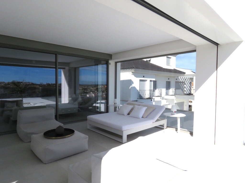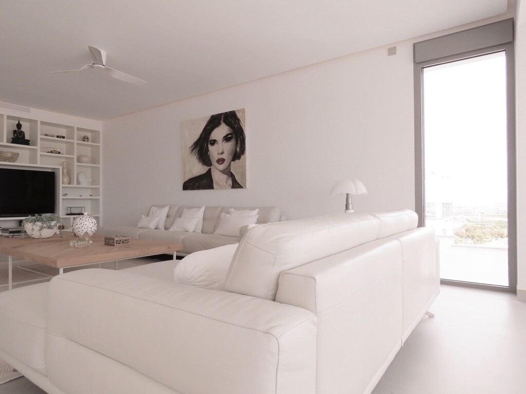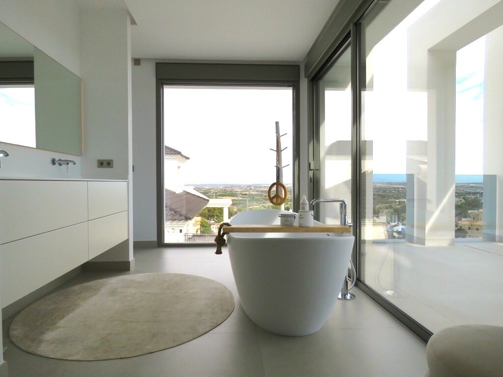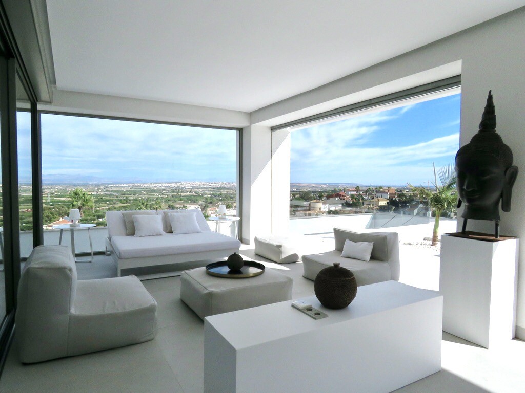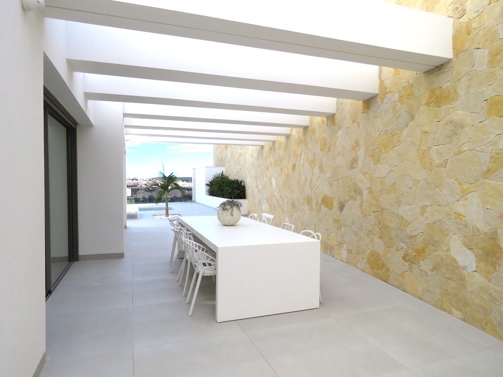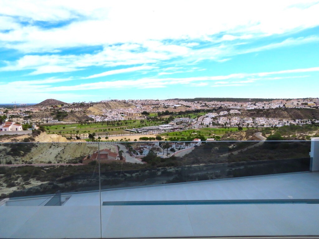 Soliariumas 66m2. Šioje dizaino viloje įrengtos naujausios technologijos, o visos medžiagos buvo kruopščiai parinktos. Pirmame aukšte yra svetainė ir valgomasis su virtuve, namų apyvokos kambarys ir dengta terasa. Pirmame aukšte yra 3 miegamieji ir 3 vonios kambariai. Garažo lygyje, žinoma, yra garažas, kuriame telpa 8 automobiliai, pramogų kambary...s ir 4 miegamasis bei vonios kambarys. Visuose namo aukštuose yra šildomos grindys, o name taip pat yra pilnas oro kondicionierius. Liftas pakelia iš garažo į viršutinį namo aukštą. Šioje gražioje viloje taip pat yra saulės baterijų. Šioje viloje yra baseinas 12x2m, lauko dušas su tualetu ir kriaukle. Prekybos centras su „La Marquesa Golf“ klubu yra vos už 900 metrų nuo šios vilos. Alikantės oro uostas yra pasiekiamas per 30 minučių.
