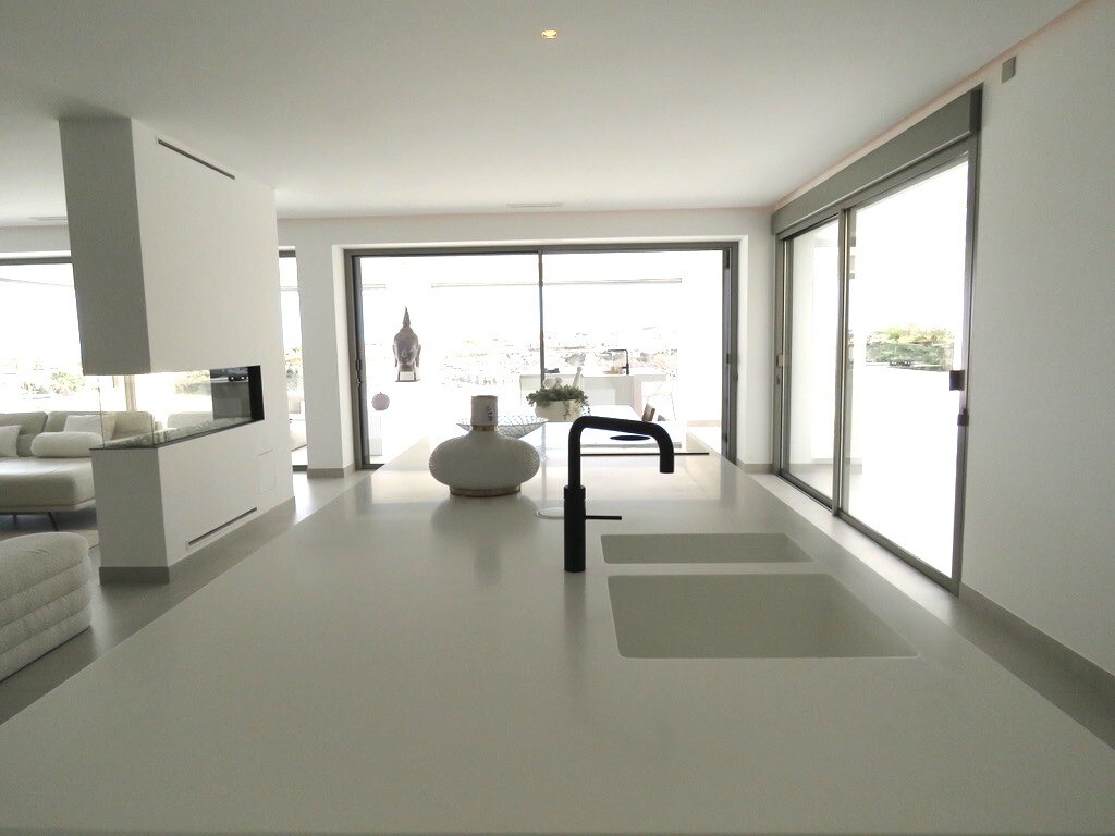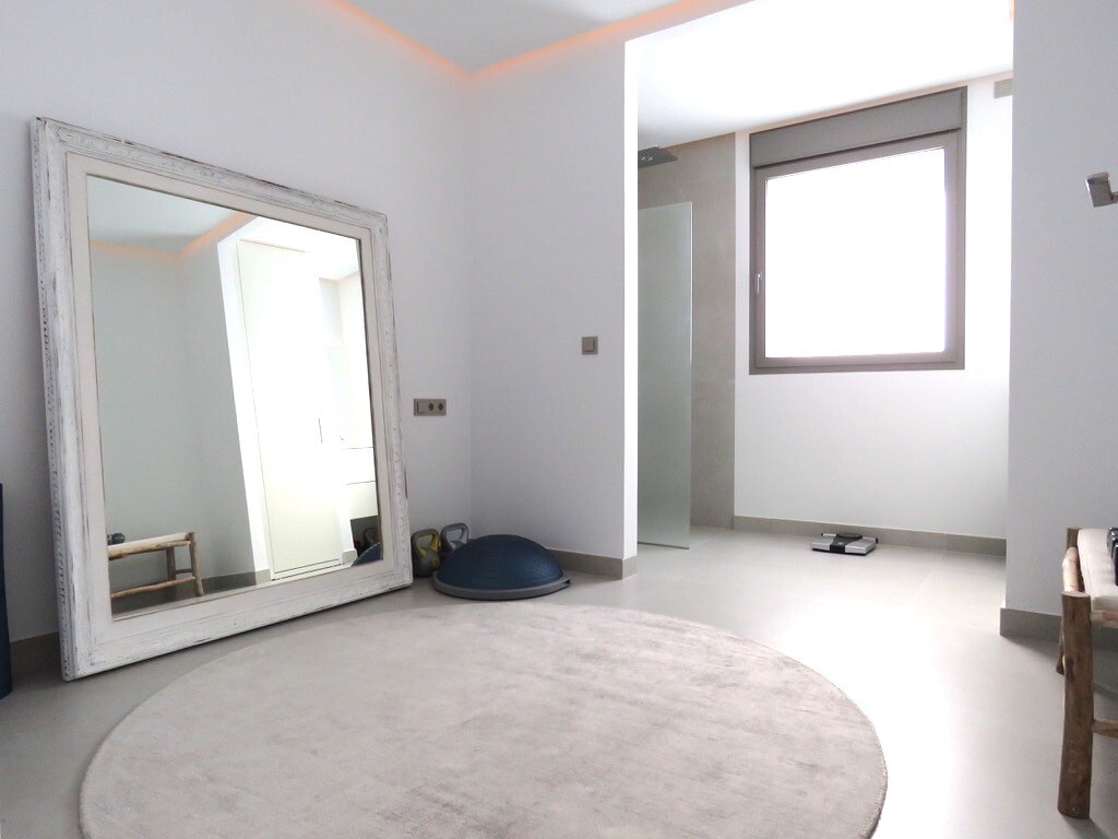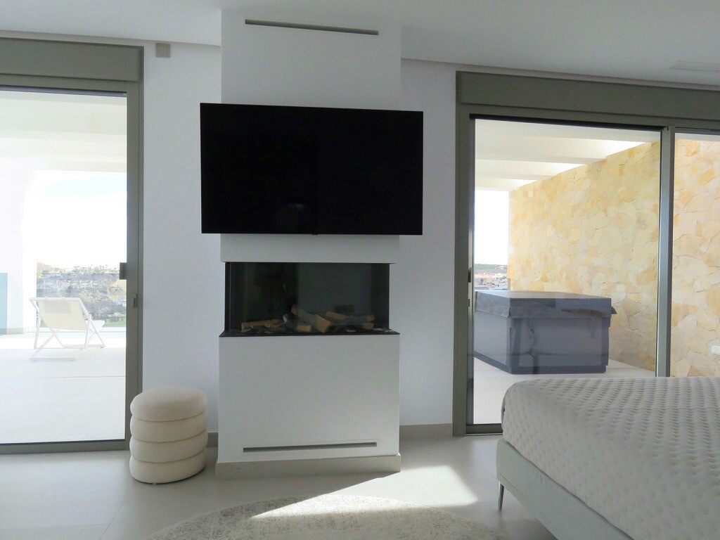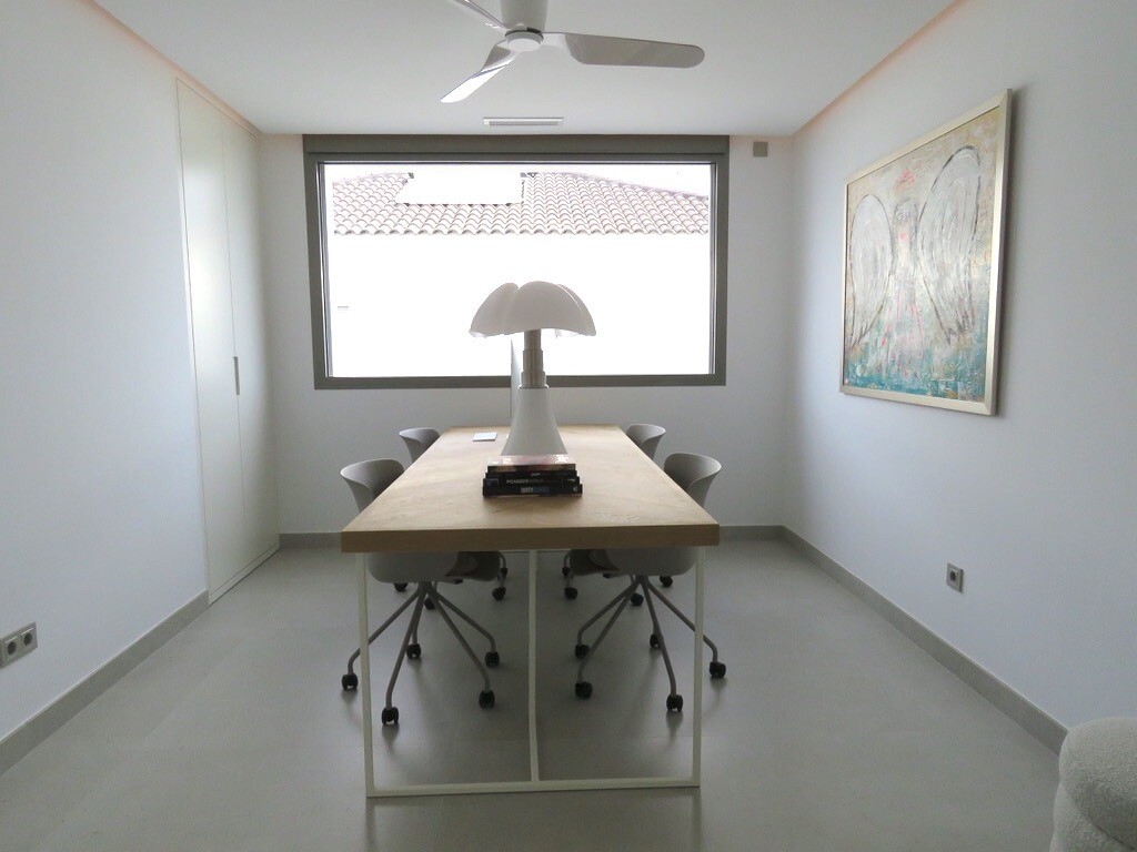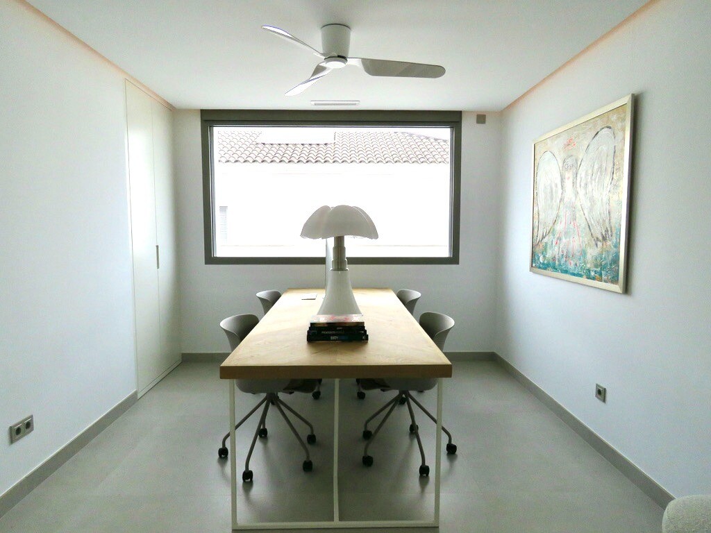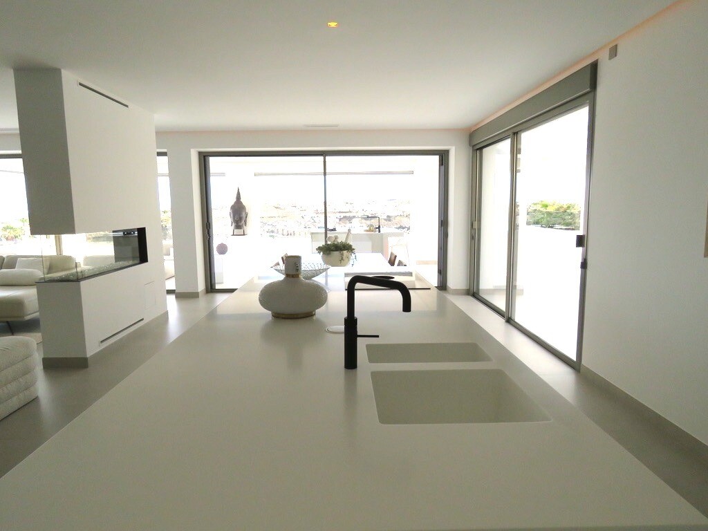 Soliariumas 66m2. Šioje dizaino viloje įrengtos naujausios technologijos, o visos medžiagos buvo kruopščiai parinktos. Pirmame aukšte yra svetainė ir valgomasis su virtuve, namų apyvokos kambarys ir dengta terasa. Pirmame aukšte yra 3 miegamieji ir 3 vonios kambariai. Garažo lygyje, žinoma, yra garažas, kuriame telpa 8 automobiliai, pramogų kambary...s ir 4 miegamasis bei vonios kambarys. Visuose namo aukštuose yra šildomos grindys, o name taip pat yra pilnas oro kondicionierius. Liftas pakelia iš garažo į viršutinį namo aukštą. Šioje gražioje viloje taip pat yra saulės baterijų. Šioje viloje yra baseinas 12x2m, lauko dušas su tualetu ir kriaukle. Prekybos centras su „La Marquesa Golf“ klubu yra vos už 900 metrų nuo šios vilos. Alikantės oro uostas yra pasiekiamas per 30 minučių.