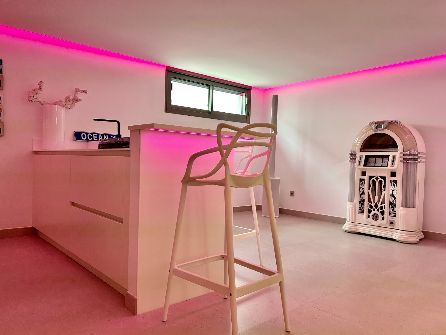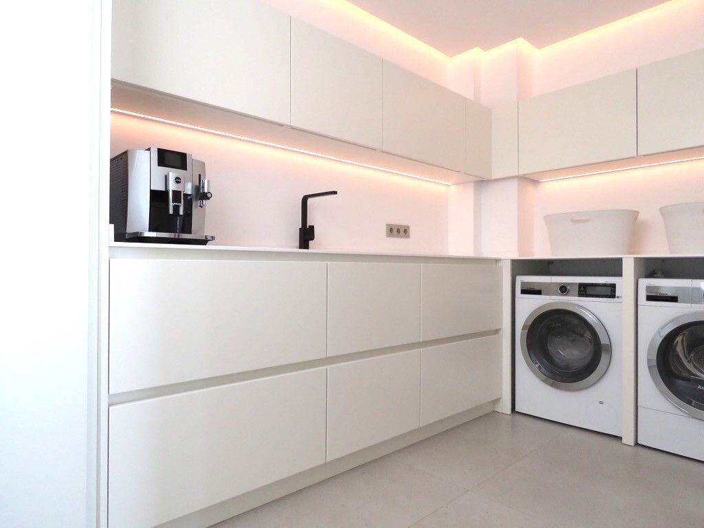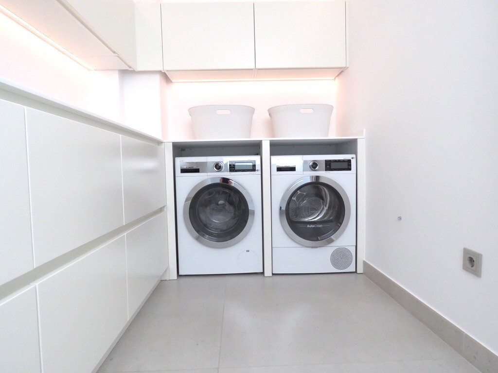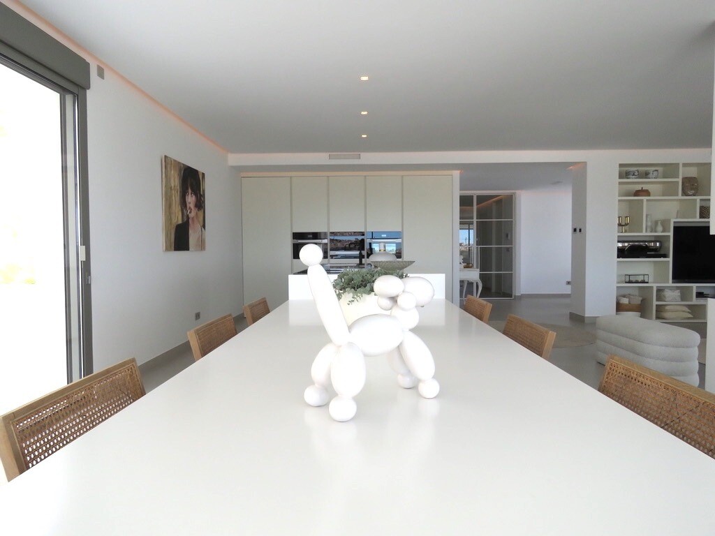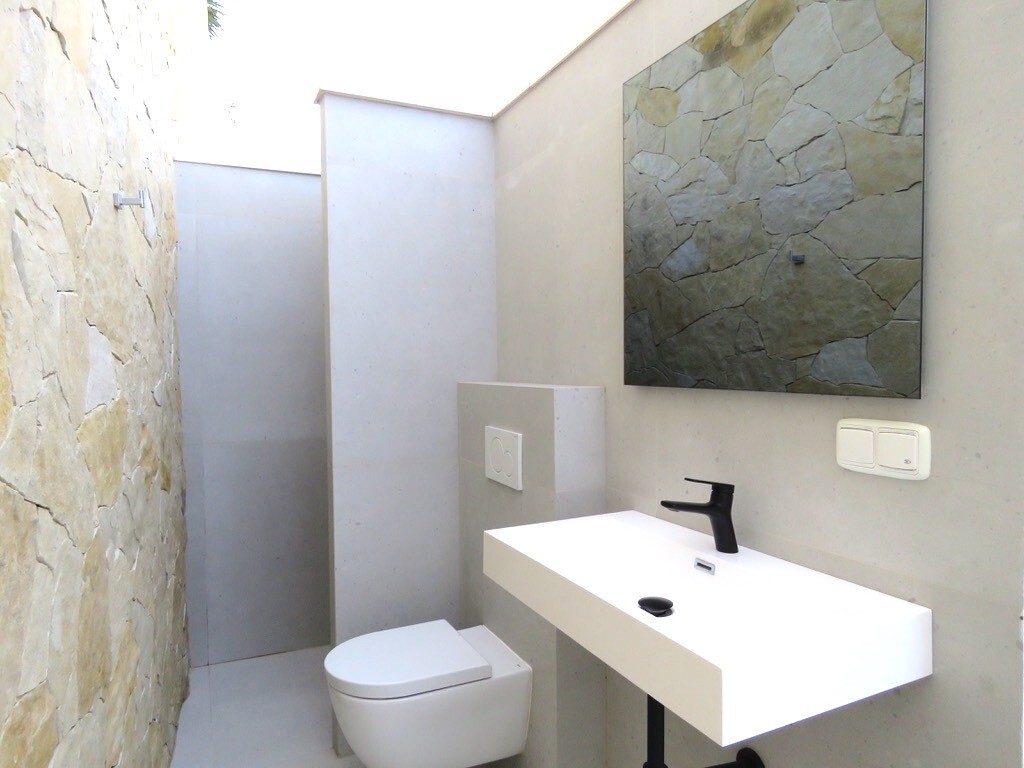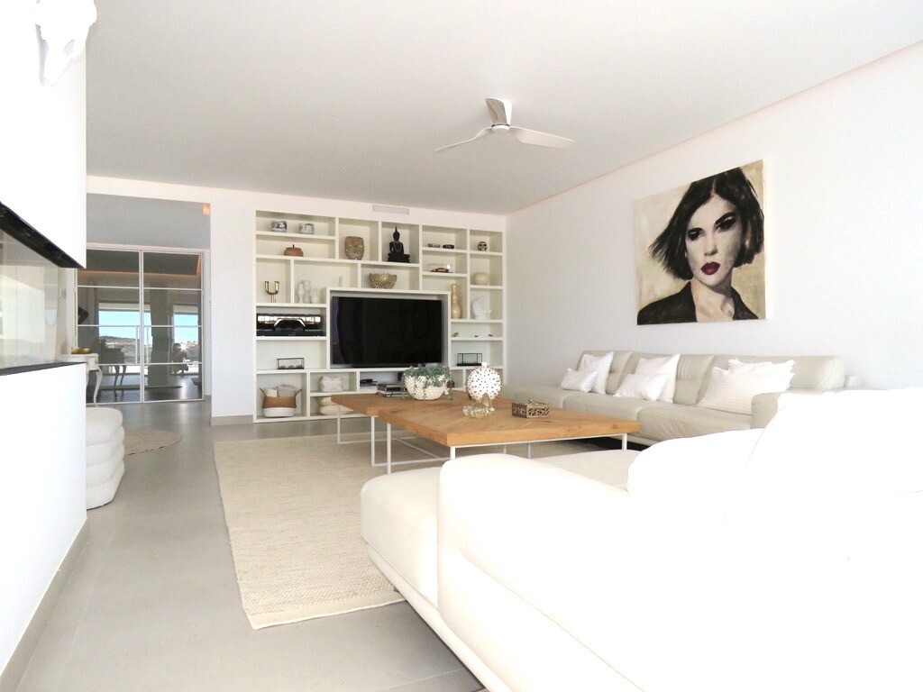 Soliariumas 66m2. Šioje dizaino viloje įrengtos naujausios technologijos, o visos medžiagos buvo kruopščiai parinktos. Pirmame aukšte yra svetainė ir valgomasis su virtuve, namų apyvokos kambarys ir dengta terasa. Pirmame aukšte yra 3 miegamieji ir 3 vonios kambariai. Garažo lygyje, žinoma, yra garažas, kuriame telpa 8 automobiliai, pramogų kambary...s ir 4 miegamasis bei vonios kambarys. Visuose namo aukštuose yra šildomos grindys, o name taip pat yra pilnas oro kondicionierius. Liftas pakelia iš garažo į viršutinį namo aukštą. Šioje gražioje viloje taip pat yra saulės baterijų. Šioje viloje yra baseinas 12x2m, lauko dušas su tualetu ir kriaukle. Prekybos centras su „La Marquesa Golf“ klubu yra vos už 900 metrų nuo šios vilos. Alikantės oro uostas yra pasiekiamas per 30 minučių.