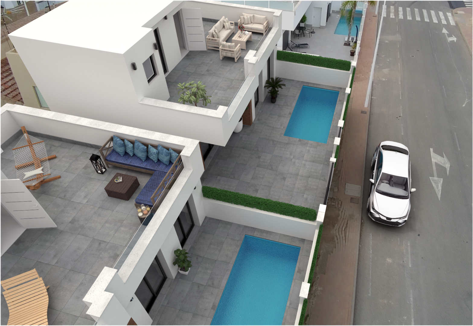 Pristatome puikią naują atskirą vilą San Pedro del Pinatare, suprojektuotą taip, kad suteiktų maksimalų komfortą ir funkcionalumą. Šioje nuosavybėje bus trys miegamieji, du iš jų - pirmame aukšte, kad būtų patogiau, ir trys modernūs bei visiškai įrengti vonios kambariai. Svetainė-valgomasis bus erdvi ir šviesi, joje bus integruota virtuvė su aukšto...s kokybės buitine technika.