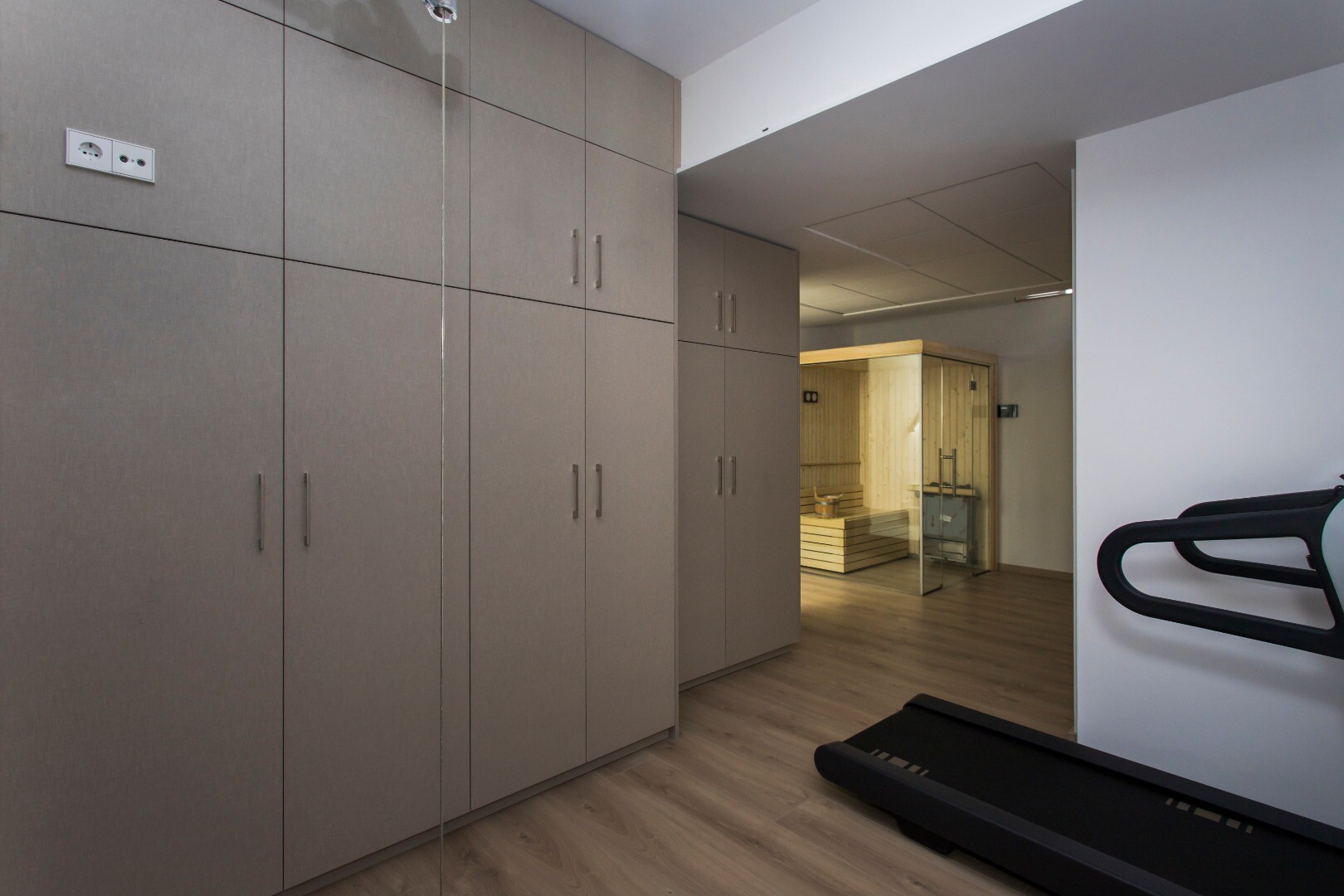 Namuose yra grindinis šildymas, ...oro kondicionieriai, automobilių stovėjimo aikštelė ir pilnai įrengti vonios kambariai bei virtuvės.